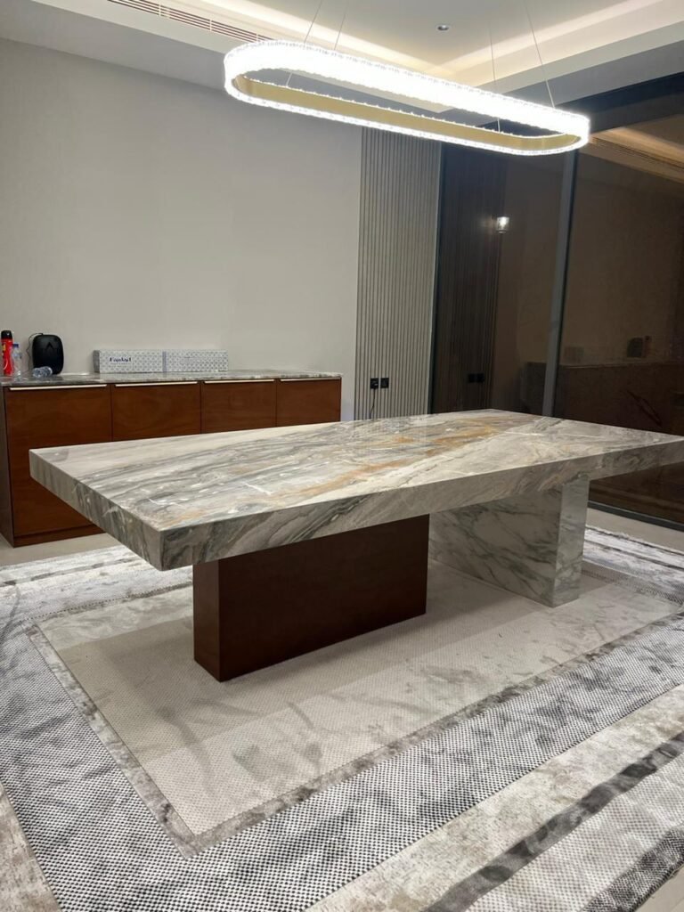 نتفن فن تفصيل طاولات الرخام الطبيعي الفاخرة و نحول كل فكرة الىقطعة فنية فريدة تليق باصحاب الذوق الرفيع